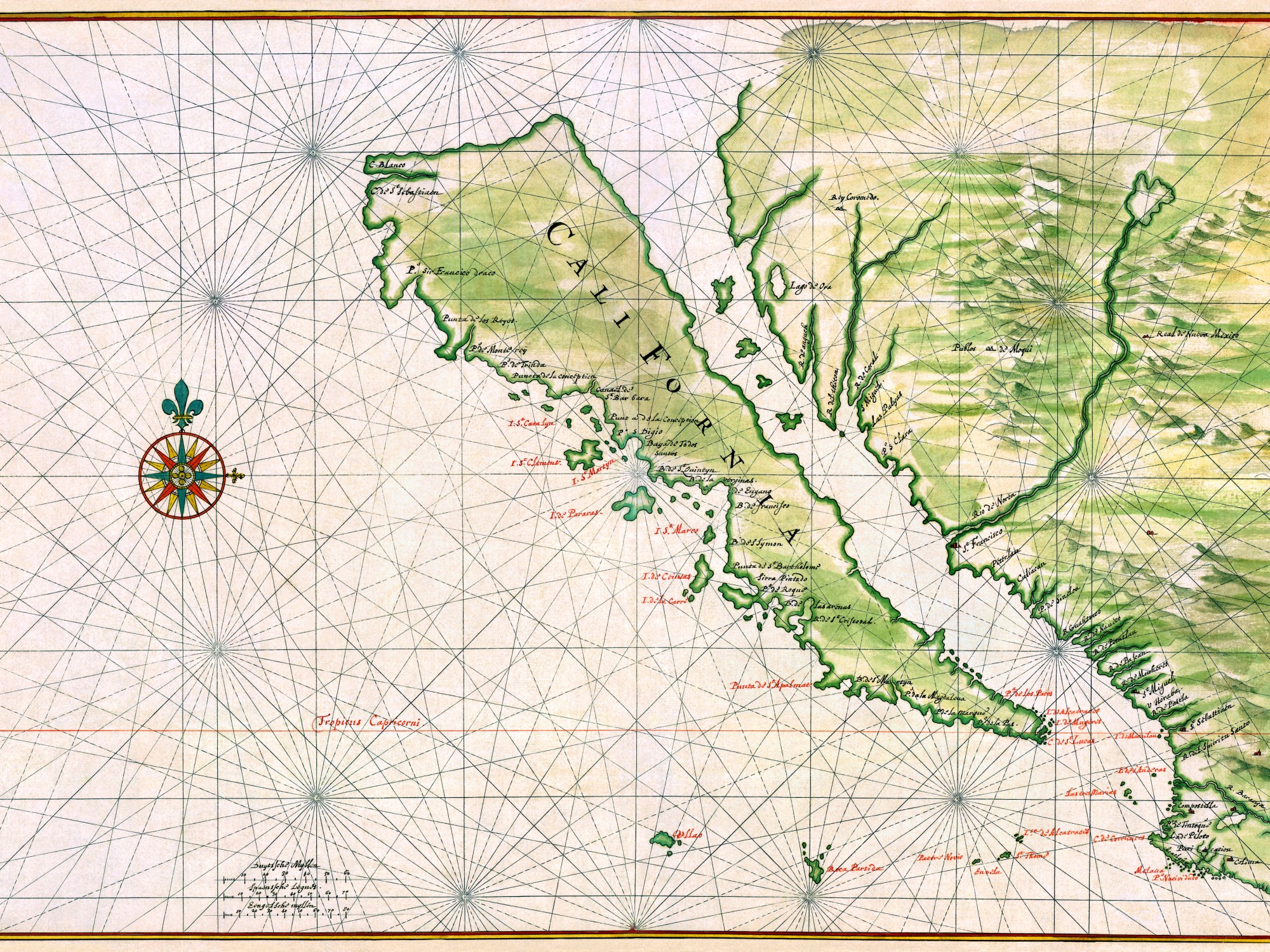 Les premiers explorateurs ont reconnu l’île de Californie dans la péninsule de la Basse-Californie, aujourd’hui au Mexique. Bien que Francisco de Ulloa, qui explorait le Golfe de Californie et la côte de la Péninsule de Basse-Californie pour le compte de Cortés, ait confirmé en 1539 qu’il s’agissait bien d’une péninsule, la Californie fut cartographiée comme une île jusqu’au XVIIIe siècle.