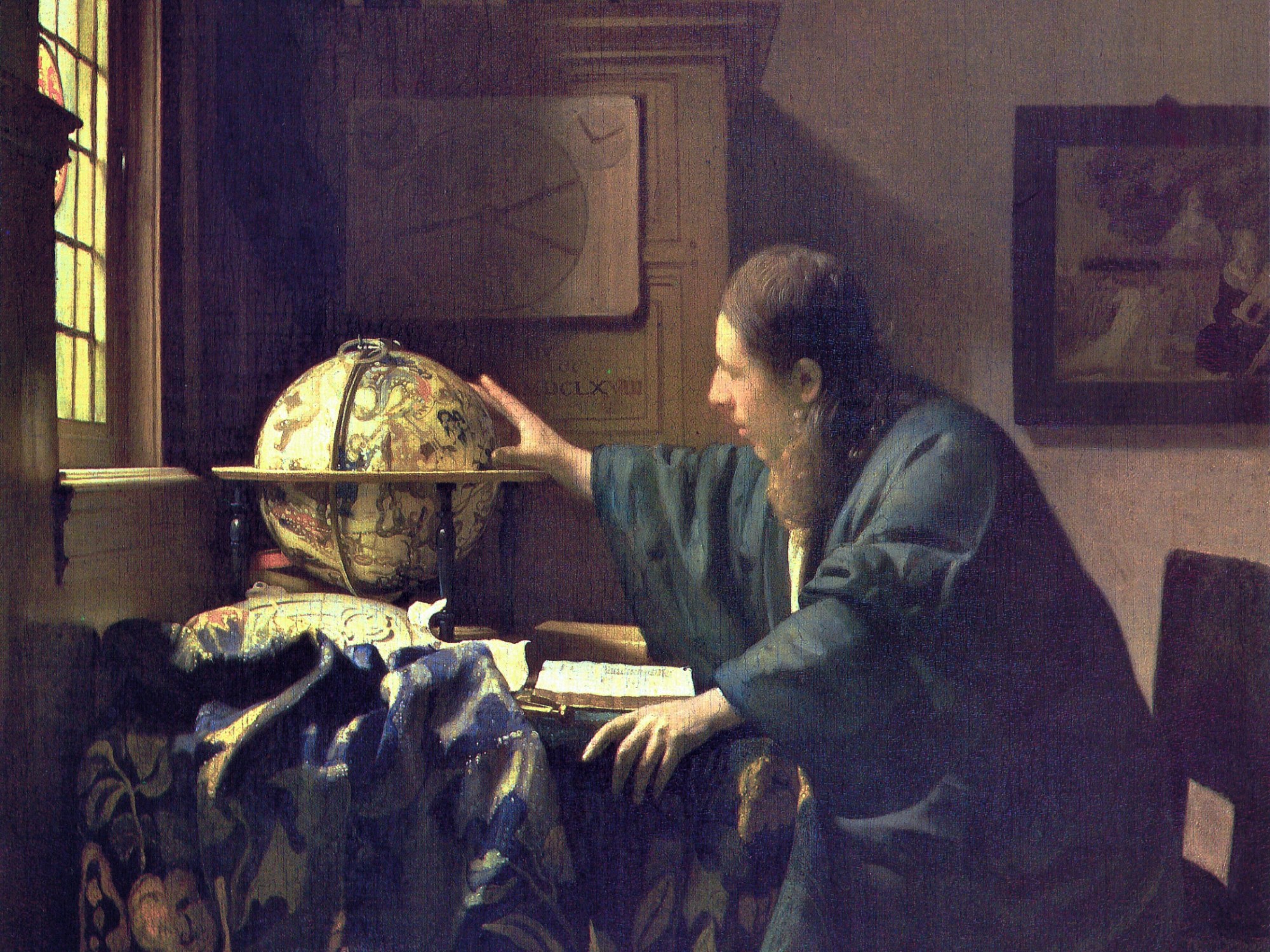 Image : Johannes Vermeer, L’Astronome, 1668, H. : 0,51 m. ; L. : 0,45 m, Paris, musée du Louvre.